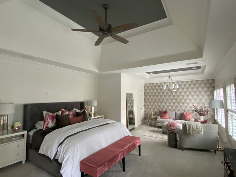 Having a dedicated comfortable sitting area in their Master bedroom was a challenge for this busy couple and parents of two young children. This large space was prime for a takeover and was completely transformed into the retreat of their dreams! With comfortable, yet grown-up seating added, along with a gorgeous wall covering to set the space apart from the rest of the room, this adult space now welcomes them to relax and unwind at the end of the day, in style. Check out the space before, below.